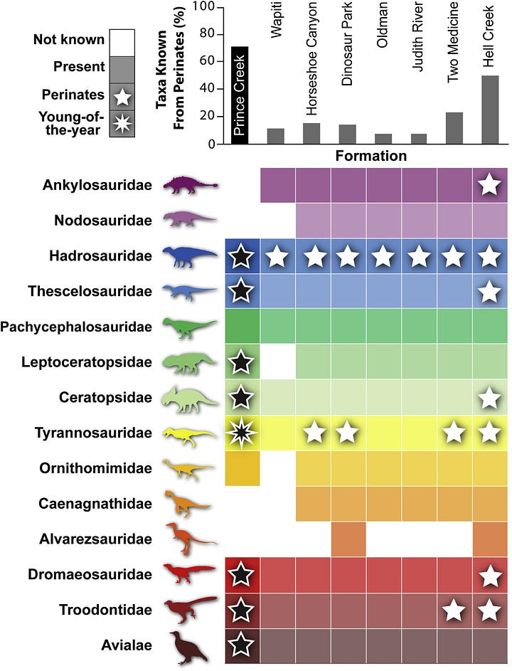 Even more striking is the diversity of species represented by these youngest remains. Both small-bodied and large-bodied dinosaurs are present. Plant-eaters and meat-eaters alike. This rules out the idea that only a few specialized species stayed behind while others migrated. The pattern points to entire communities living year-round at high latitudes.